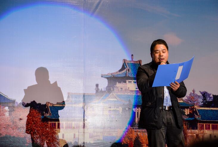 在全体师生的热情欢迎和阵阵掌声中,基础医学院党委书记蒋明老师和基础医学院党委副书记李樵老师分别为大家带来独唱《再回首》和诗歌朗诵《再别双湖桥》,蒋书记悠扬的歌声和李书记深情的朗诵再次把晚会的气氛推向高潮,同学们情绪高涨,欢呼声不断。(图片八蒋书记放声独唱,图片九李书记深情朗诵)