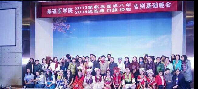 12月23日晚,武汉大学2013级临八、2014级临七临五、检验、口腔专业“梦想高飞”告别基础文艺晚会在医学部学术报告厅成功举办。医学部党工委副书记、基础医学院党委书记蒋明,医学部教学管理处副处长余峰,口腔医学院党委副书记台保军,基础医学院党委副书记洪燕、李樵,副院长何立、侯炜,院长助理陈云、刘万红,第一临床学院教办党总支书记杨劲,基础医学院2013级和2014级班级导师,基础医学院各办公室主任以及第一临床学院、第二临床学院、基础医学院本科生辅导员出席了本次晚会。