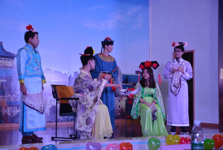 2014级临床医学(七年制)4班的同学们,将繁忙而充实的医学生生活演绎为一部勾心斗角,幽默诙谐的后宫宫廷戏,男扮女装的设计更是让全体师生忍俊不禁,观众的掌声和欢呼声此起彼伏。(图片四《后宫医学转》),紧接着三个大班的俊男靓女们为大家带来服装秀《极乐净土》,洋溢着青春色彩。