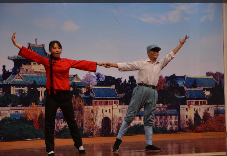 2014级临七临五检验大班辅导员杨孟祥老师和学生为大家奉献了优美协调的双人舞《九九艳阳天》,充分体现了在基础医学院学习阶段辅导员老师和同学们积攒的深厚友谊,让大家内心着实感动。(图片五双人舞《九九艳阳天》。节目结束之后,在大班长杨宇和宣传委员张帮华的策划下,2014级临七临五检验大班同学为杨孟祥老师献上了感谢视频《杨老师,我想对您说》和同学们精心准备的礼物,台下学生高呼“杨老师我爱您”,晚会的气氛到达高潮,最后全体师生用最热烈的掌声向这位兢兢业业的66岁返聘教授致敬。(图片六杨孟祥老师)