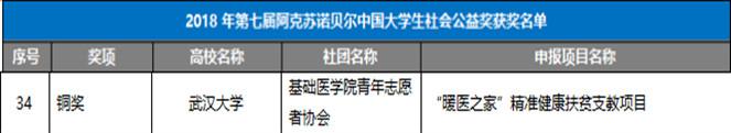 1120日,第七届阿克苏诺贝尔中国大学生社会公益奖获奖名单正式公布,我院“暖医之家”赴恩施州白果树村少数民族健康扶贫项目荣获铜奖。