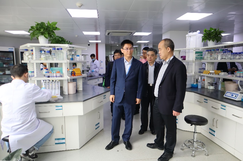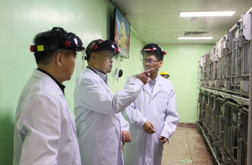 窦贤康一边听取基础医学院院长、模式动物研究所所长李红良介绍该所的发展进步情况,一边实地考察实验楼及大动物、小动物手术室等,对该所在我国生物安全领域做出的重大贡献表示赞赏;在参观研究所的档案室时,窦贤康驻足良久,仔细观看和询问,对该所详尽的纸质档案和数字化资料归整工作连连点头;随后,窦贤康一行调研了各平台运行状况,并对研究所平台建设、科研风貌、产业化发展前景给予了充分肯定。