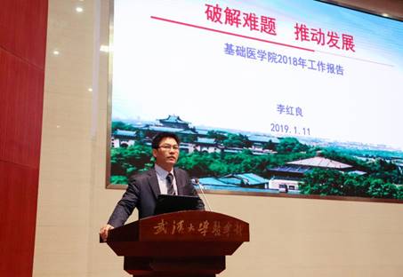 院长李红良作学院工作报告,他从人才队伍、办学条件、科学研究、教学工作等四个方面深刻分析了我院2018年初所面临的困境;围绕人才队伍、办学条件、教学工作、科学研究、交流合作、社会服务、思政工作等方面回顾了2018年学院所取得的成绩;他对2019年工作做出如下规划:引育并举,提升人才队伍竞争力;深化改革,提升教育教学质量;优势互补,促进科研融合发展;抢抓机遇,建好教学科研公共平台。他表示,学院领导班子将带领全院教职工,迎难而上,破解困境,抢抓机遇,争创一流,为实现学院跨越式发展、服务学校“双一流”建设而努力奋斗。