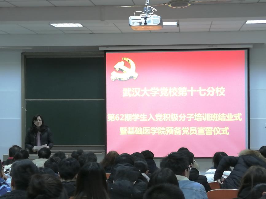 武汉大学党校第十七分校第62期学生入党积极分子培训班结业式暨基础医学院预备党员宣誓仪式顺利举行