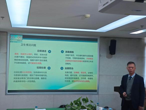 学校/学院实验室安全督导组专家田卫群就争创优秀实验室标准情况进行了报告,阐述了新安全格局的定义,指出了生物医学实验室存在的安全隐患与问题,解析了实验室评优及五星级安全实验室评选标准,呼吁学院师生树立安全格局意识,筑牢实验室安全线。