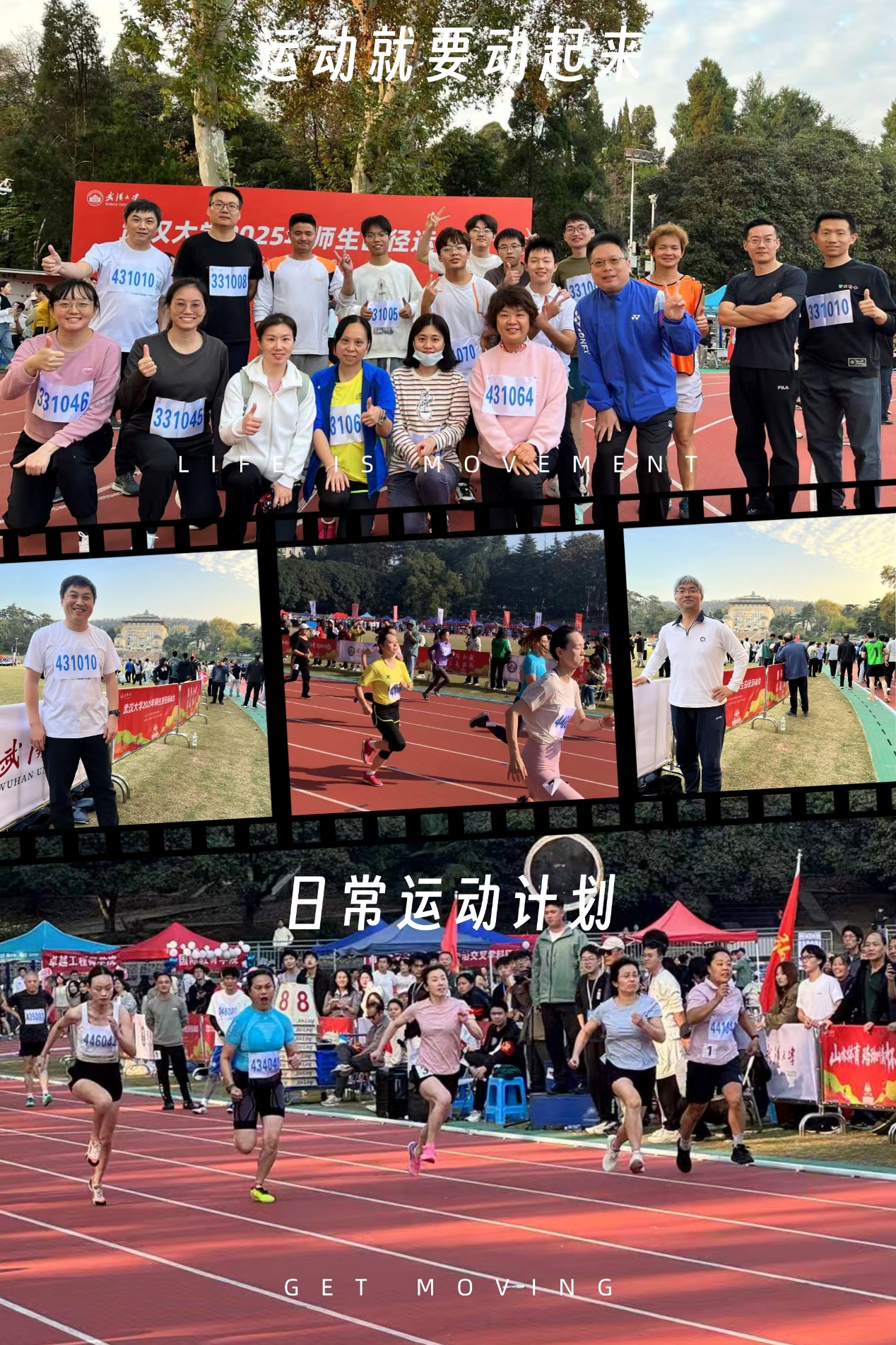 开幕式后,各项田径赛事陆续展开,竞争激烈,精彩纷呈。基础医学院共有50余名教师参与了全部项目的角逐。其中最激动人心的时刻,莫过于生理系的李长勇老师在男子立定跳远项目中,以2.50米的优异成绩勇夺银牌。赛后,李老师谦逊地表示:“很高兴在运动会上给学院贡献了一点微薄之力。”这份成绩的背后,是他数年如一日的坚持。自2021年起,无论寒暑风雨,他每周都坚持健身3到4次。李老师动情地回忆道:“几年之前,桂园操场上的一行宣传语——每天锻炼一小时,健康工作五十年,幸福生活一辈子,给我留下了深刻的印象,这句话也与大家共勉。”这正是对运动精神最好的诠释。