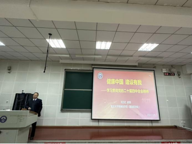开班第一课由学院党委委员、免疫学系和生物医学工程系、结构中心党支部书记刘万红教授带来题为“健康中国,建设有我”的专题党课。刘教授在党课里着重介绍了习近平总书记在党的二十届四中全会上的重要讲话精神和《中共中央关于制定国民经济和社会发展第十五个五年规划的建议》。他指出,党的二十届四中全会着重强调要“加快高水平科技自立自强”,“加快建设健康中国”,希望在座的同学们以大会重要精神作为自己学习、科研工作的根本遵循。