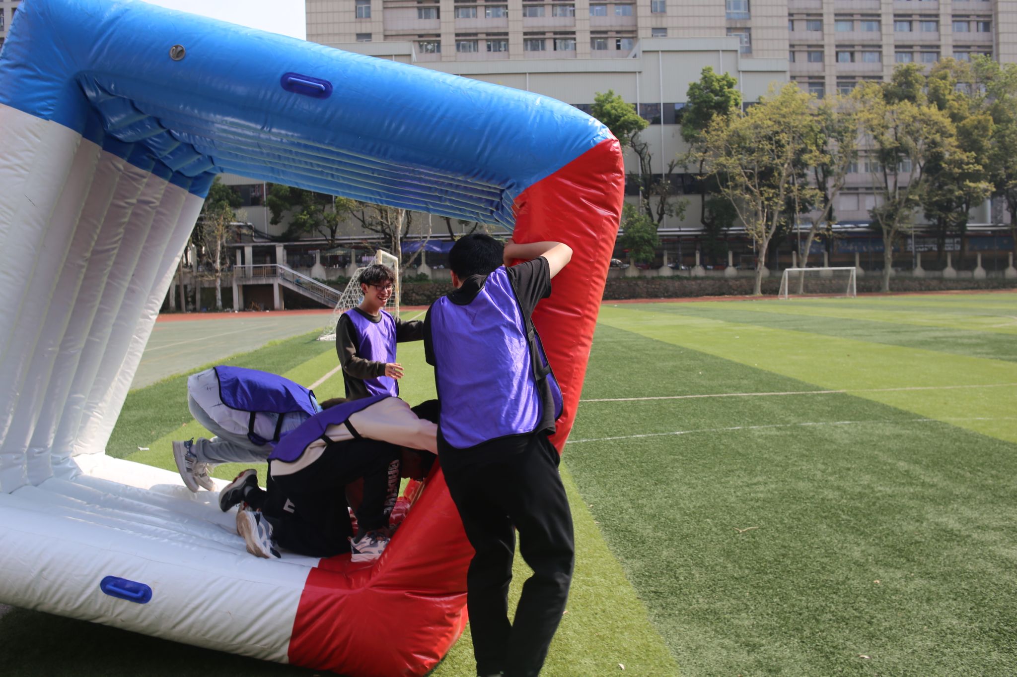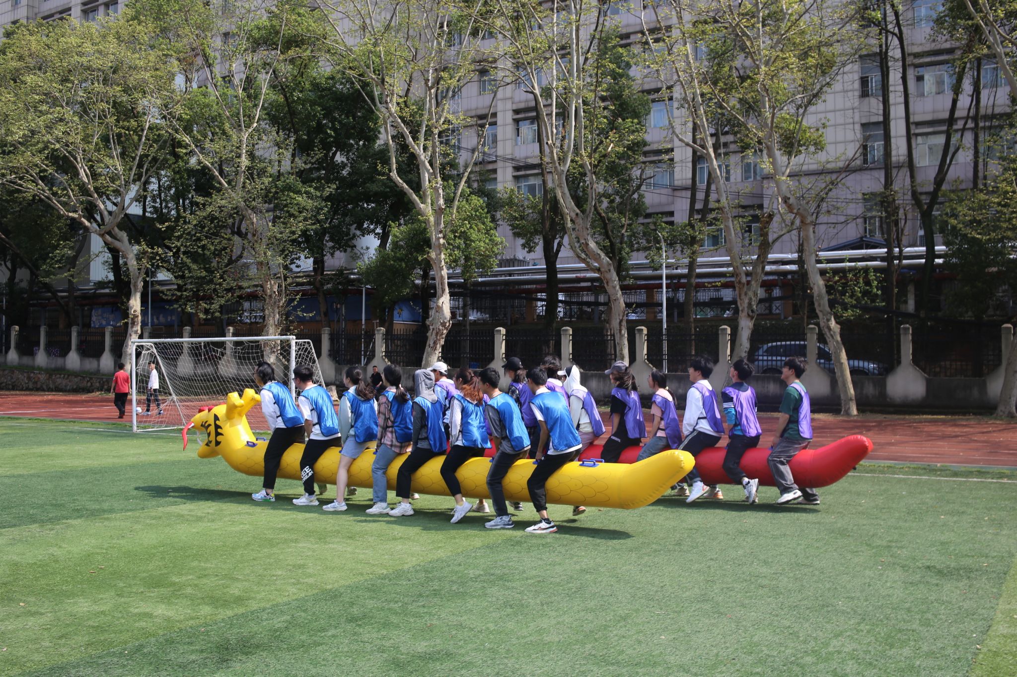 “时代巨轮”、“碰碰球”、“旱地龙舟”等生动有趣的游戏给同学们带来了欢乐与惊喜,同学们的笑脸比阳光更温暖,同学们的欢笑比天籁更动听。