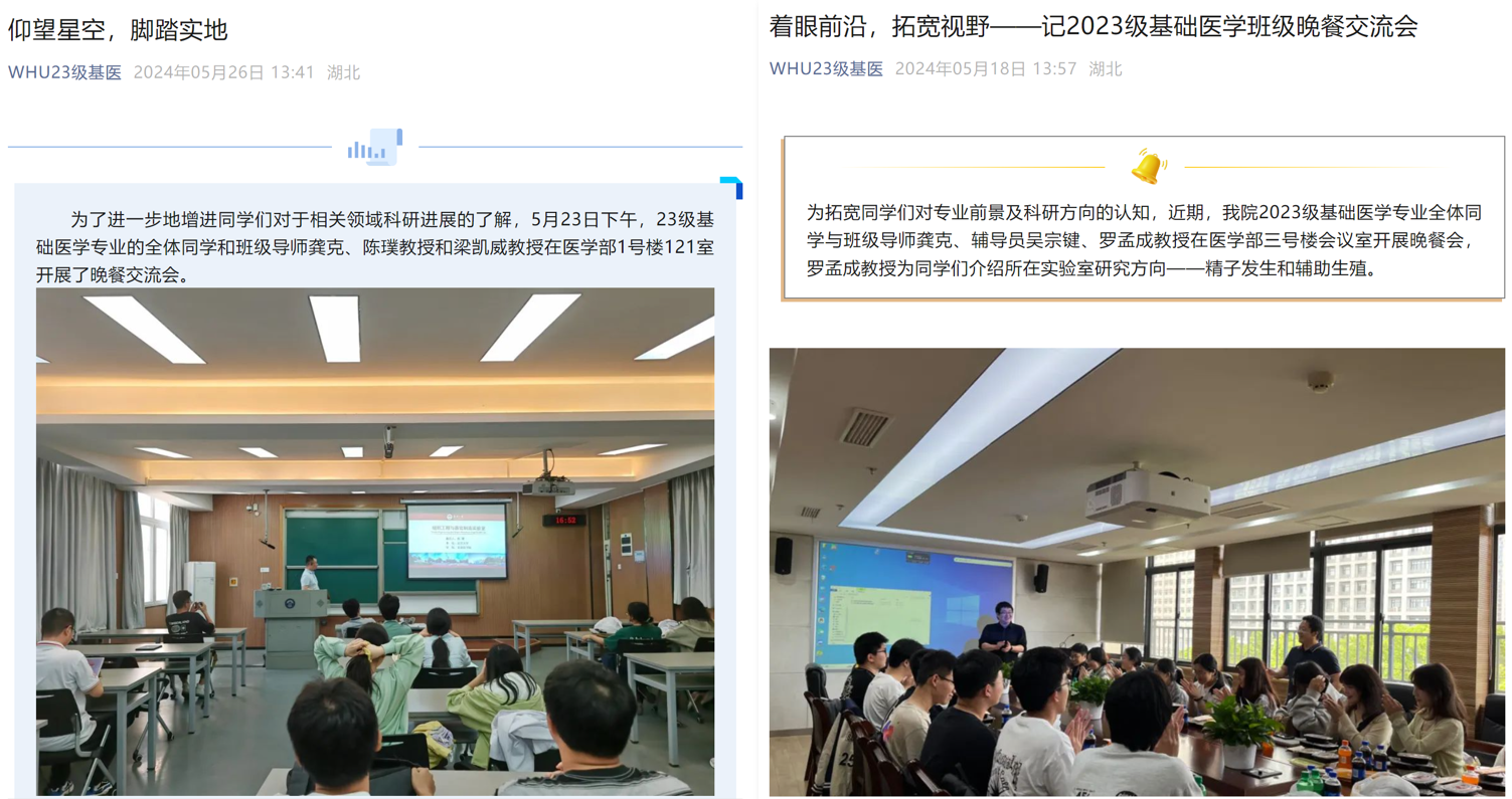 23级基础医学强基班始终致力于营造和谐融洽的班级氛围,除进行团建、开展素质拓展、举办班级运动会之外,还通过创建专属的班级公众号,发布班级动态、分享学习心得、送上节日祝福等,希望在传递正能量的同时,也增进班级同学之间的感情,提高班集体的凝聚力和战斗力。目前,班级公众号已经拥有60位用户,发布34篇推文,累计阅读量达到2500余次。