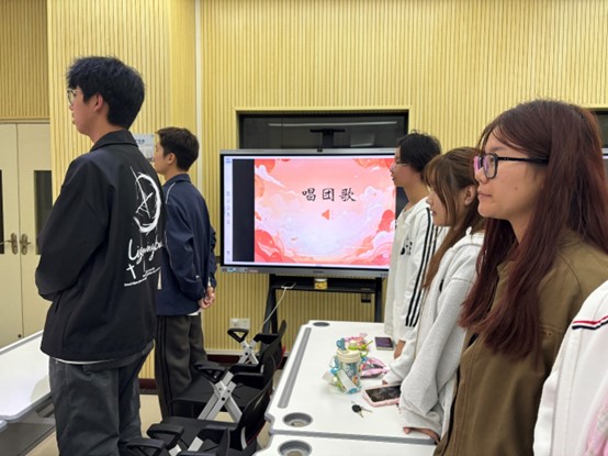 活动第一项,齐唱共青团团歌。随着伴奏的响起,全体成员充满青春活力的歌声在教室中回荡,彰显了他们对共青团的忠诚与热情。