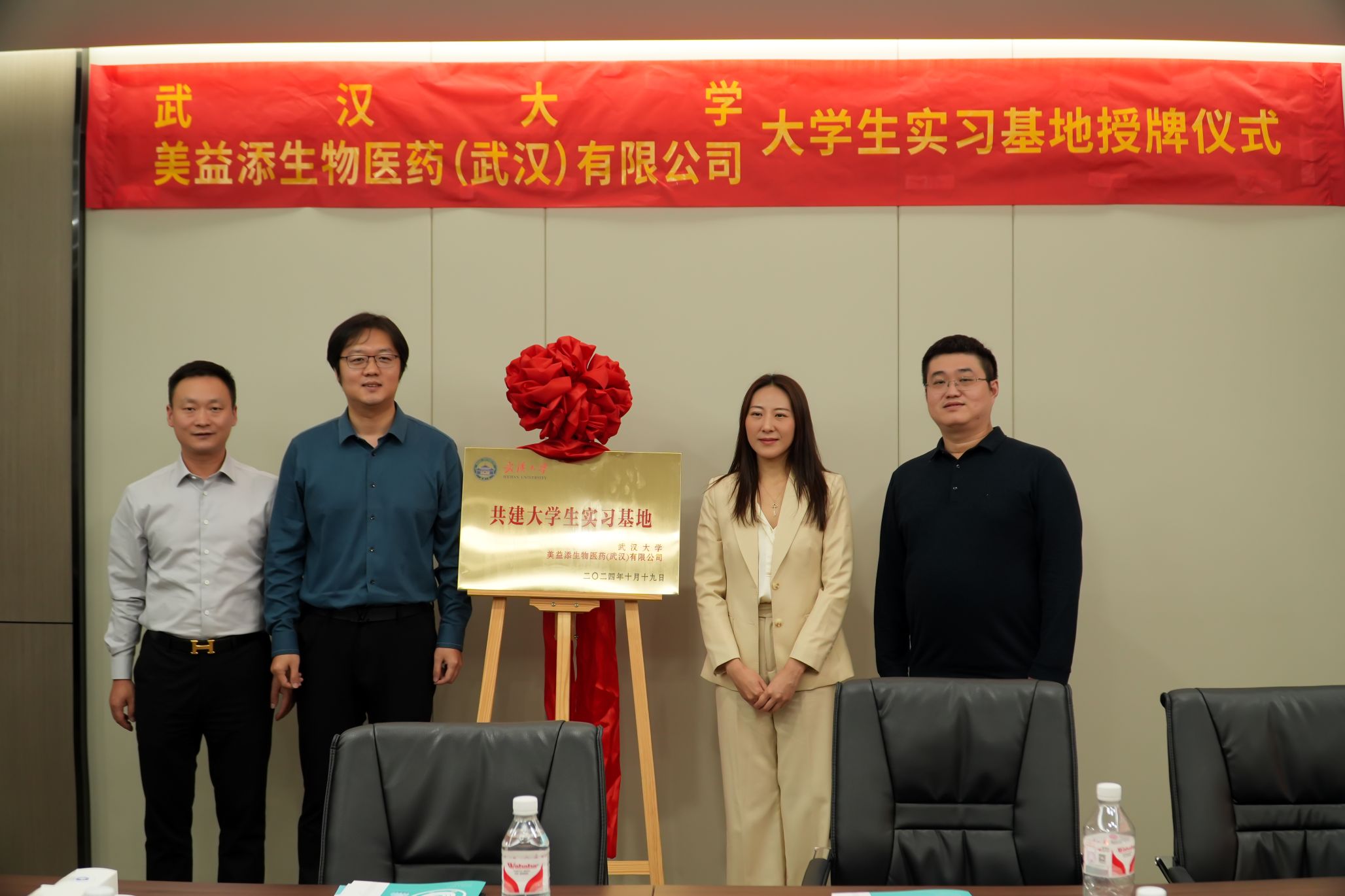 1019日下午,吴莹教授班级导师龚克教授的带领下,23级基础医学17名学生一同前往美益添生物医药(武汉)有限公司参观学习,并见证武汉大学——美益添生物医药(武汉)有限公司大学生实习基地的建立