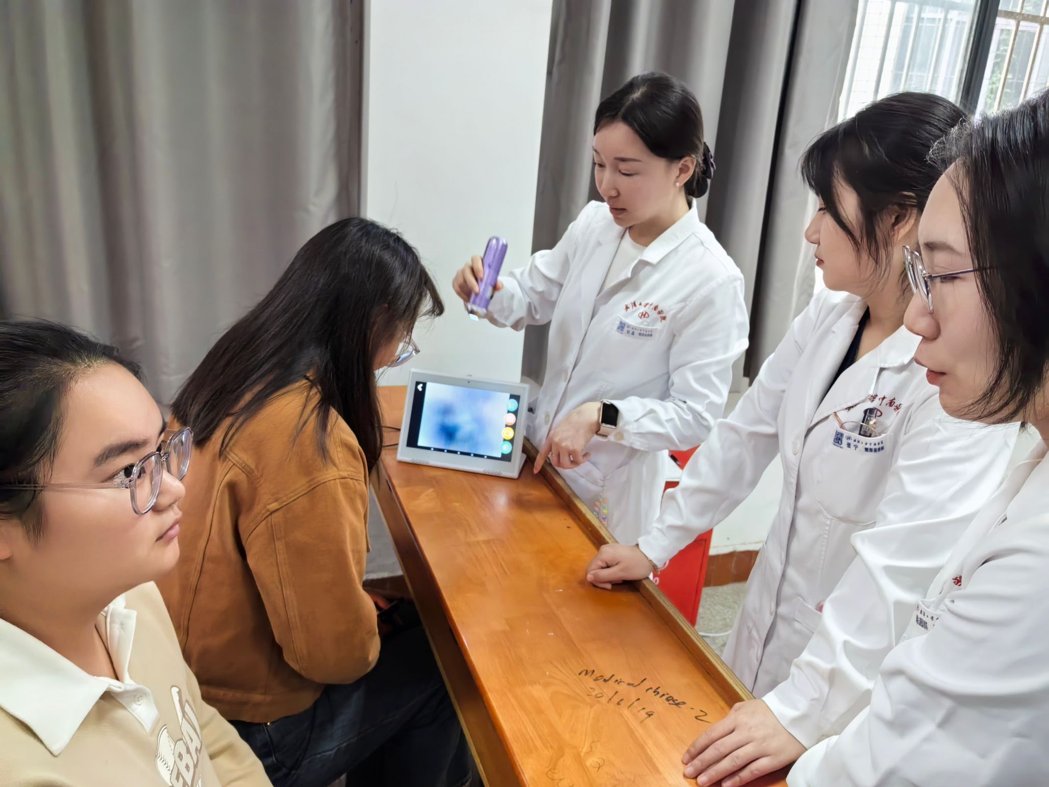 整形美容科医生们帮助同学们检测发质