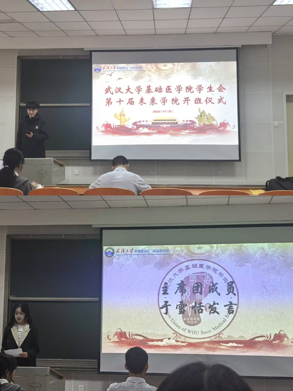 11月9日下午,武汉大学基础医学院学生会在医学部6号楼成功举行了未来学院开班仪式第一课——学习党的二十届三中全会精神。活动伊始,武汉大学基础医学院学生会主席团成员于雪恬等同学未来学院学员们介绍了未来学院相关规章制度,明确课程学习的相关任务和结课方式。指导老师杨晨涛强调学生会工作的实质是服务于同学,希望各位学员能在此次活动中学有所成。