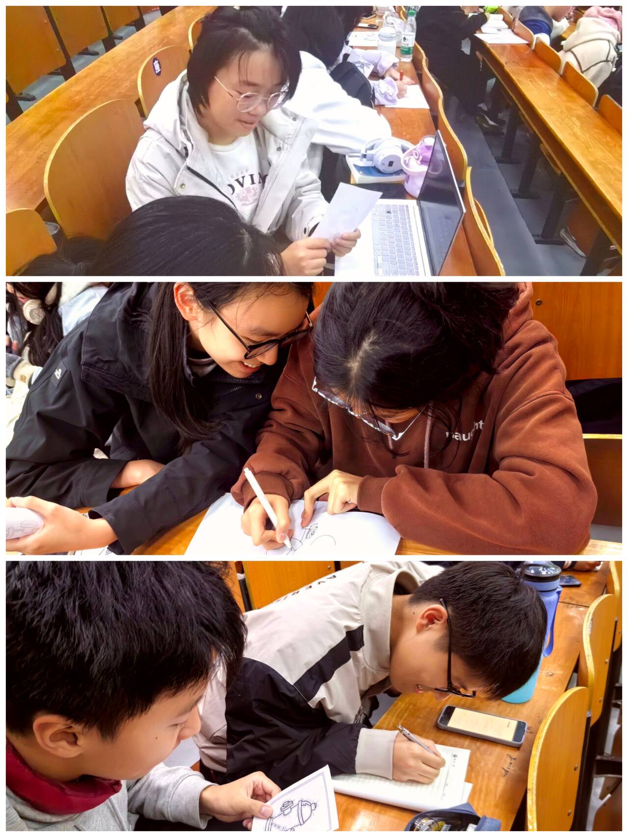 接着进入了“双向快车道”环节。在此环节,B同学负责描述原图图画,A同学可以随时向B同学提出问题并根据回答调整自己的绘画内容。在双方积极的互动与沟通反馈过程中,图画迅速完成,并展现出了与原图更高的相似度。这一显著的对比,让同学们深刻感受到了双向沟通在减少误解、提高信息传递准确性方面的巨大优势。