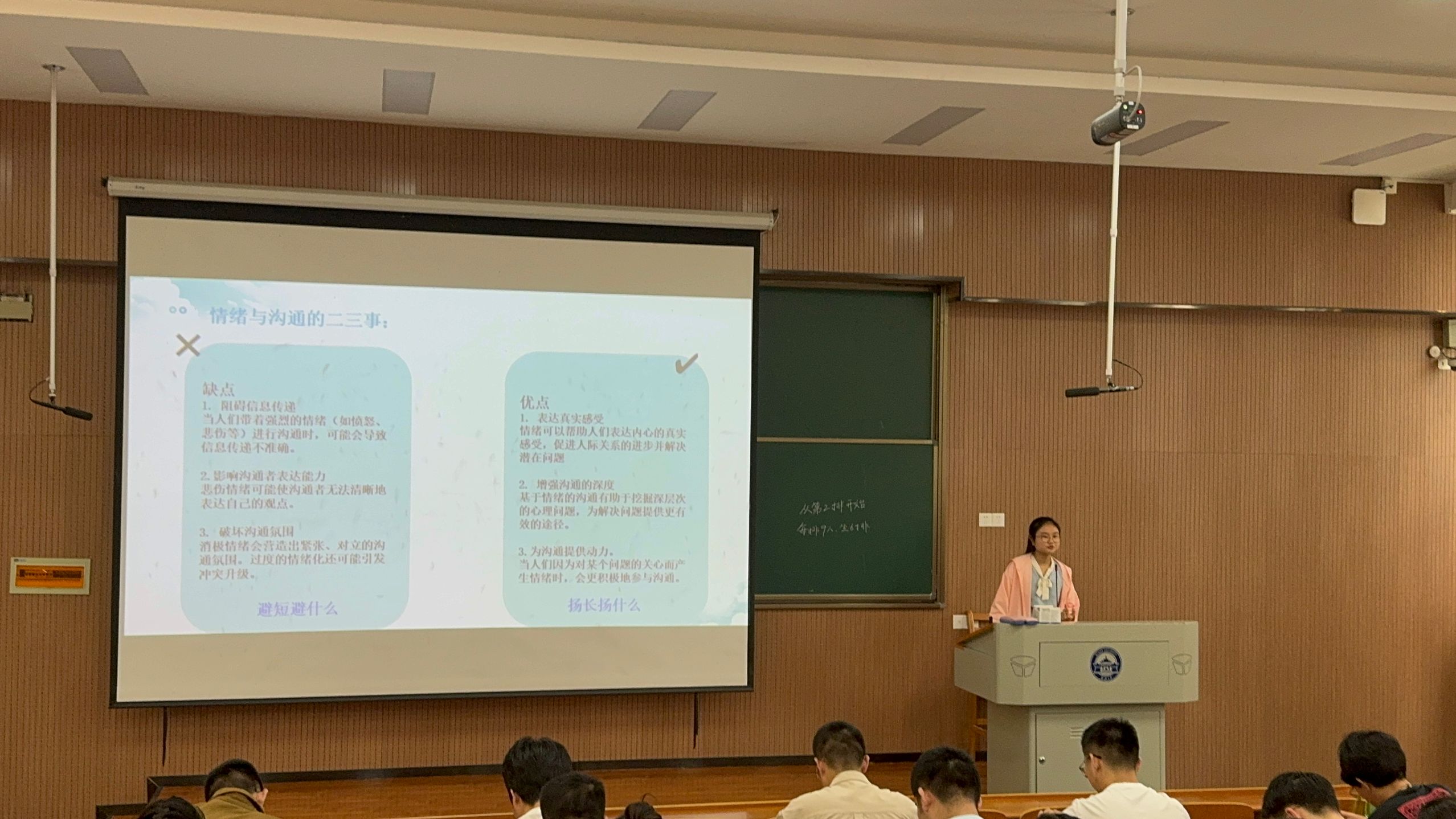 针对情绪表达李曼怡同学分享了具体化情绪”“控制语气语速等十大实操技巧并提醒同学们理性沟通压抑情绪需在表达真实感受与保持理性之间找到平衡。