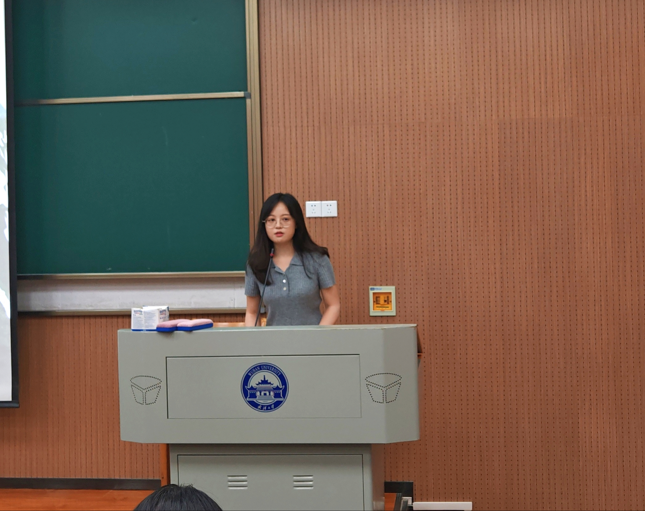 基础医学院学生会主席团成员楼佳慧同学进行总结发言,她回顾了近一年社指与社团们的密切联系,对社团成员们的辛勤工作表示感谢,并对未来社团的丰富活动充满期待。