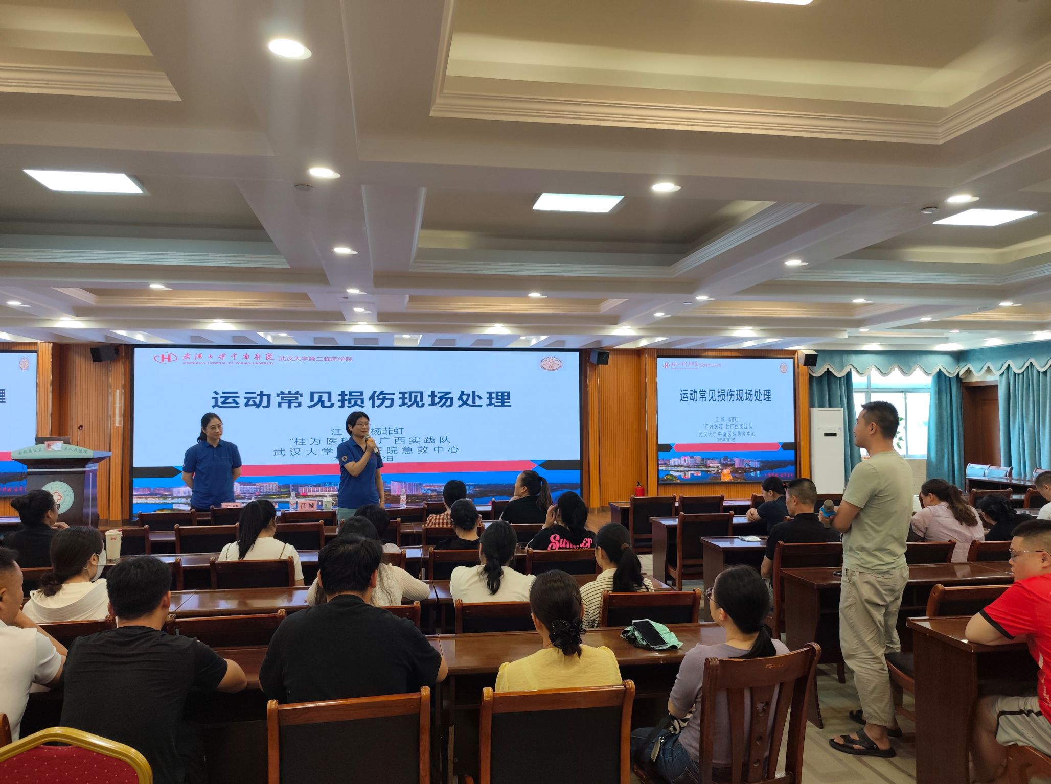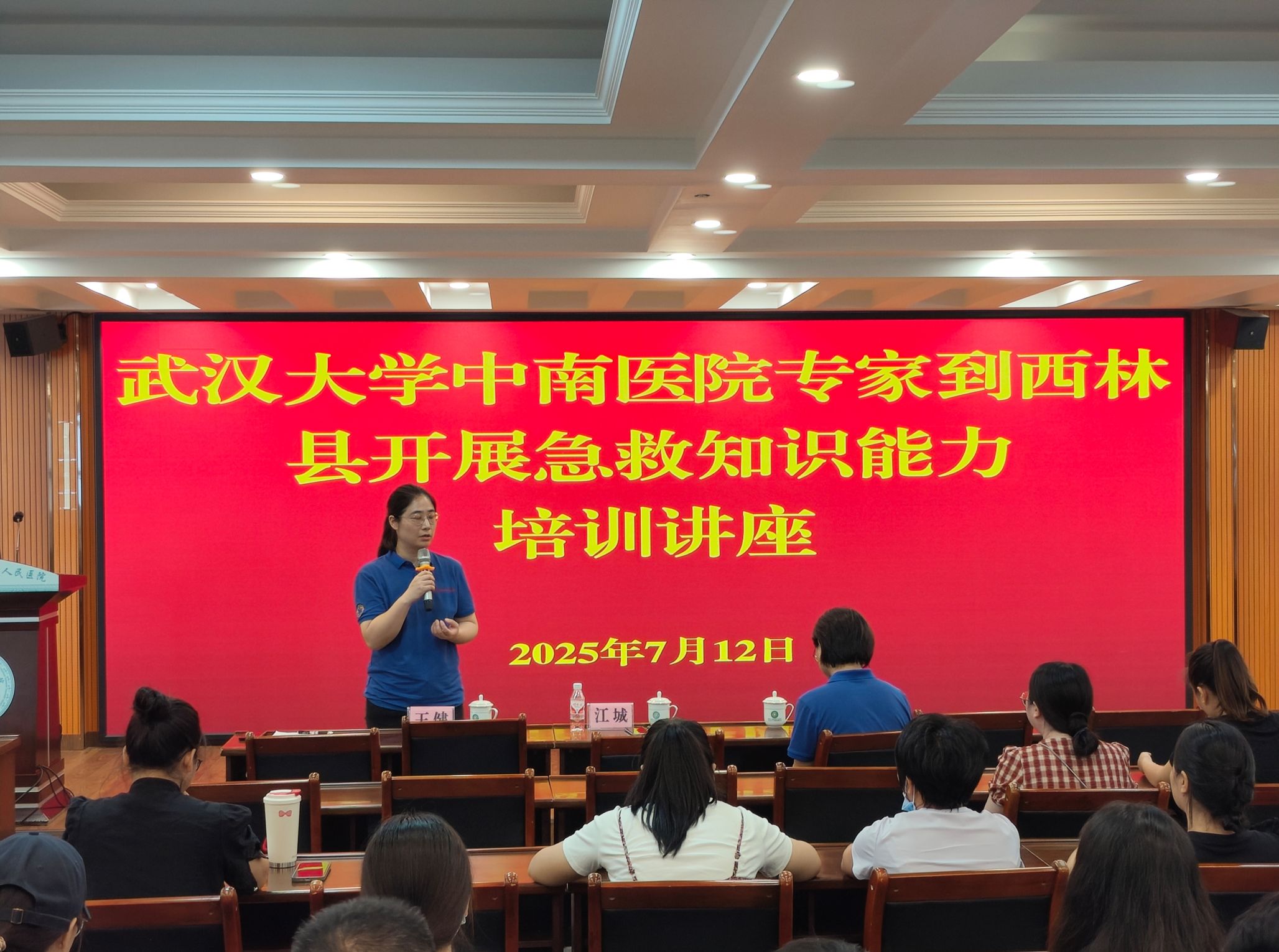 7月12日下午,武汉大学中南医院急救中心江城主任与杨菲虹医生,赴西林县人民医院开展运动会前专项急救培训,助力保障即将举行的百色市第八届运动会顺利进行。