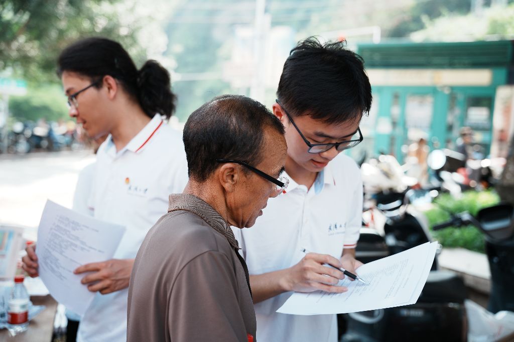 七月的西林骄阳似火,但实践队同学们的热情更胜骄阳。义诊现场,可见同学们布置活动场地、引导就诊人员、协助义诊工作的身影;街头小巷,同学们耐心科普肝脏健康知识,进行肝脏健康知识普及度问卷调查。义诊接近尾声,工作间隙,实践队的医学生们还在医生前辈的指导下,上手为就诊人员测量血压、测定血糖,真正实现了知行合一。