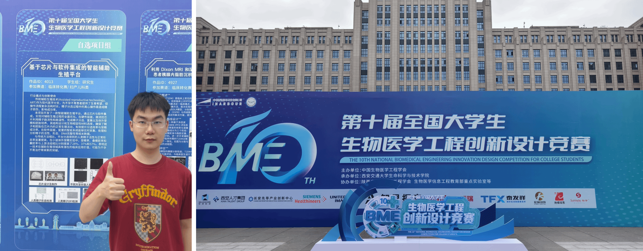 2025年7月22日,第十届全国大学生生物医学工程创新设计竞赛决赛在西安交通大学落幕。我院组织工程与器官制造实验室陈璞教授指导的《基于芯片与软件集成的智能辅助生殖平台》项目获本次竞赛研究生自选项目组(临床转化赛妇产儿科类)一等奖,参赛选手为曹瀚文、张一冉、钟鸣婧、孙明杰。