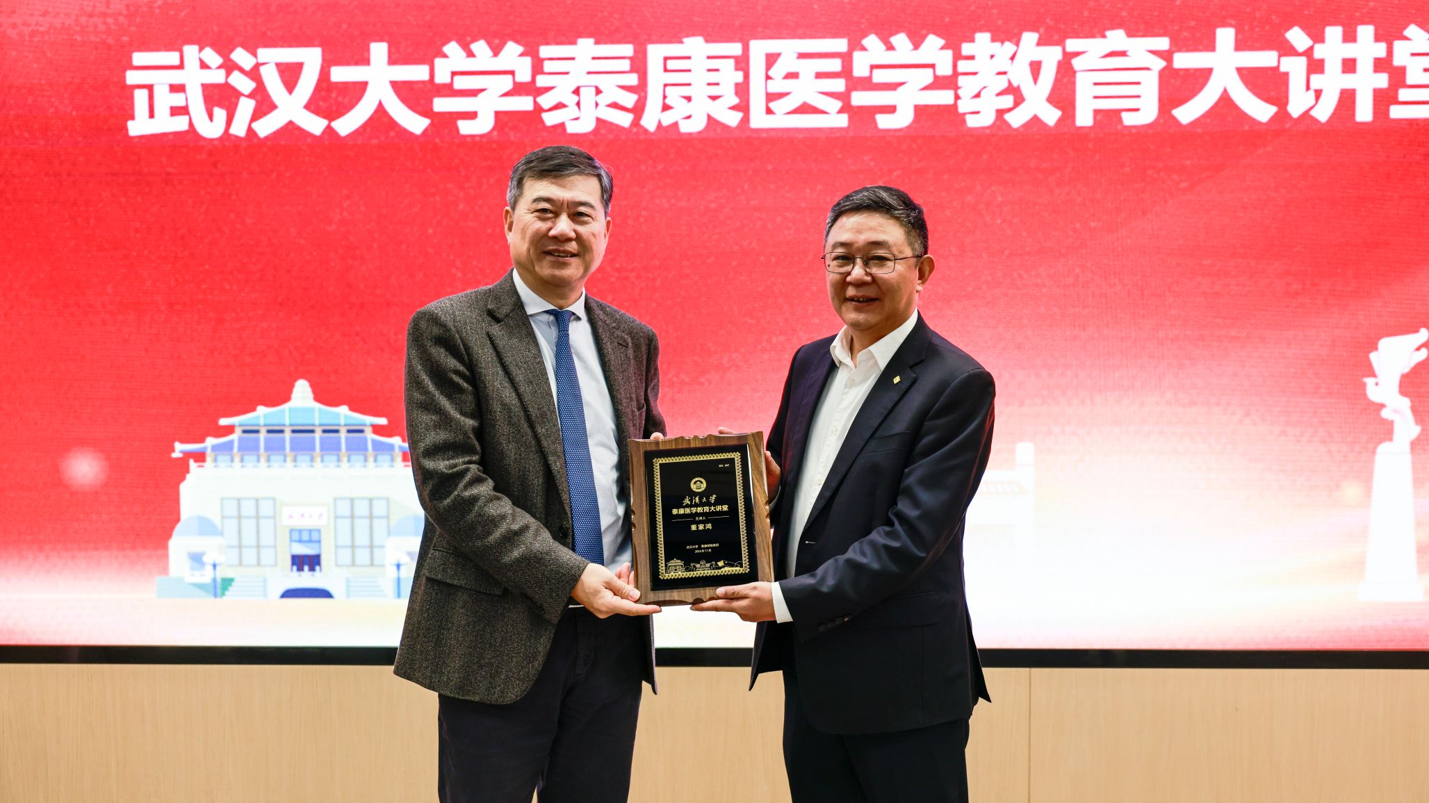 11月8日上午,董家鸿院士受邀做客珞珈讲坛第514讲暨泰康医学院(基础医学院)院士大讲堂第四讲、泰康医学教育大讲堂第七讲,讲坛在武汉大学医学部九号楼一楼会议室顺利举行。董家鸿以“卓越医师”为主题,分享了成为卓越医师的三要素“良医、学者、领军者”、如何成长为一名卓越的医师等内容。武汉大学基础医学院党委书记熊瑛,武汉大学泰康临床学院院长、泰康(同济)武汉医院执行院长王志华,泰康医学院(基础医学院)常务副院长梁凯威,副院长任怡,泰康医疗助理总裁兼教育研究院院长郭明磊出席讲坛,共100余名师生代表参与讲坛。熊瑛为主讲人颁发珞珈讲坛纪念牌,郭明磊授予主讲人泰康医学教育大讲堂纪念牌。梁凯威主持论坛。