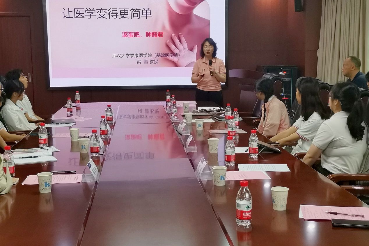 魏蕾也带来了精彩的科普讲座示范课滚蛋吧,肿瘤君!,增进了师生对肿瘤的症状、病因与预防治疗的认识,让与会人员受益匪浅。