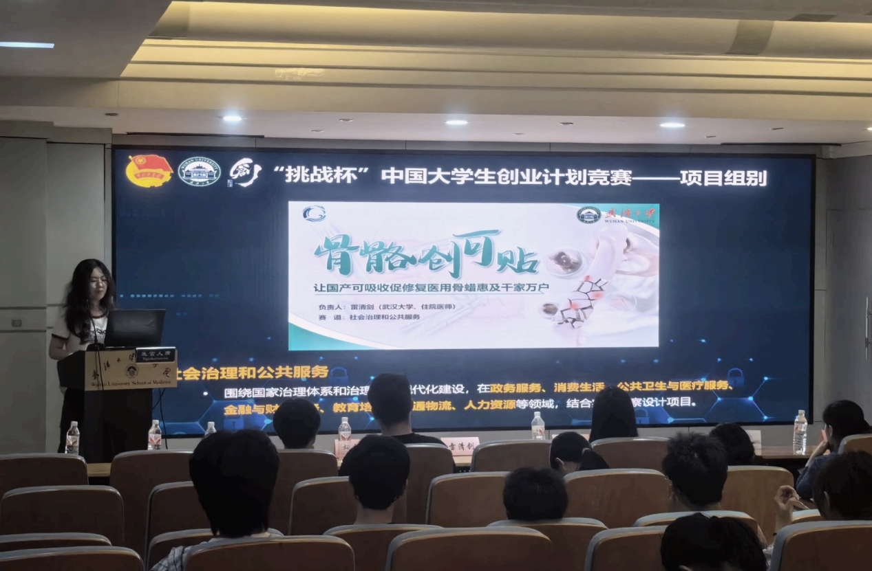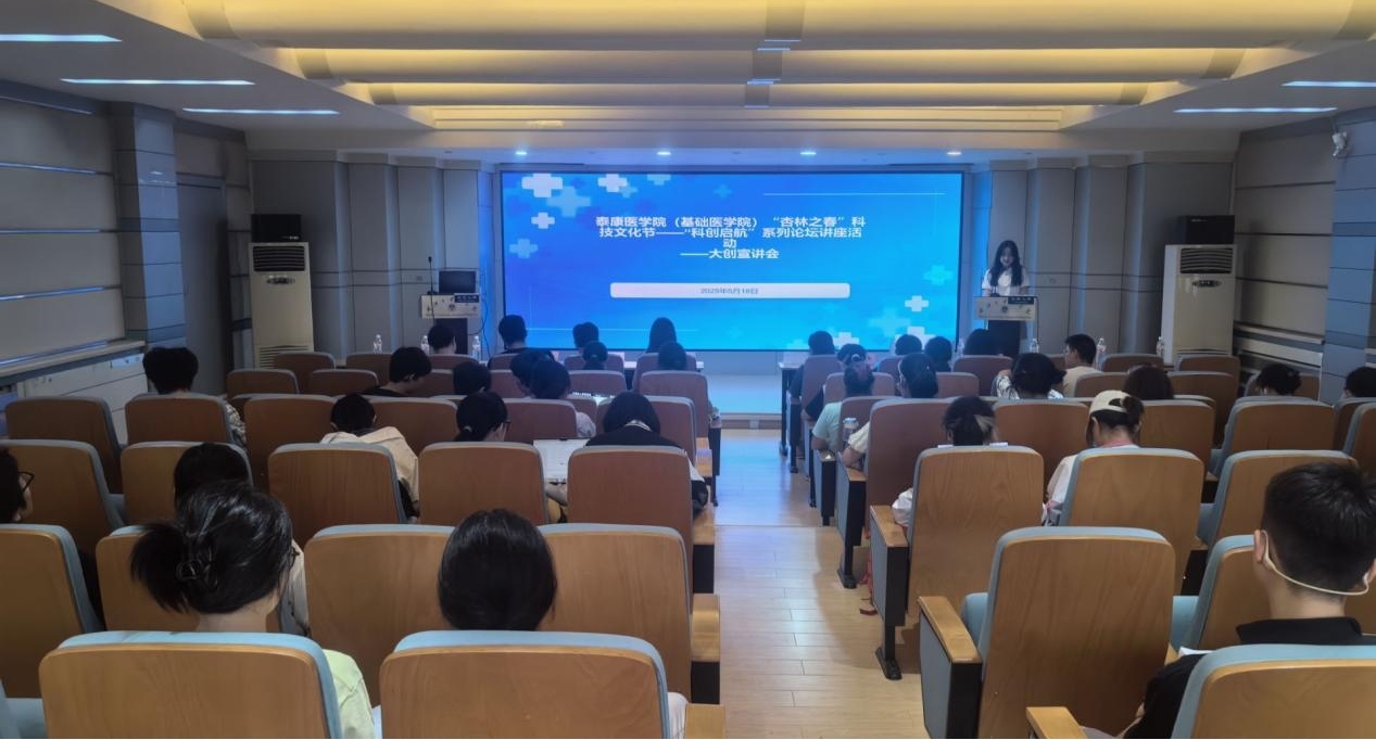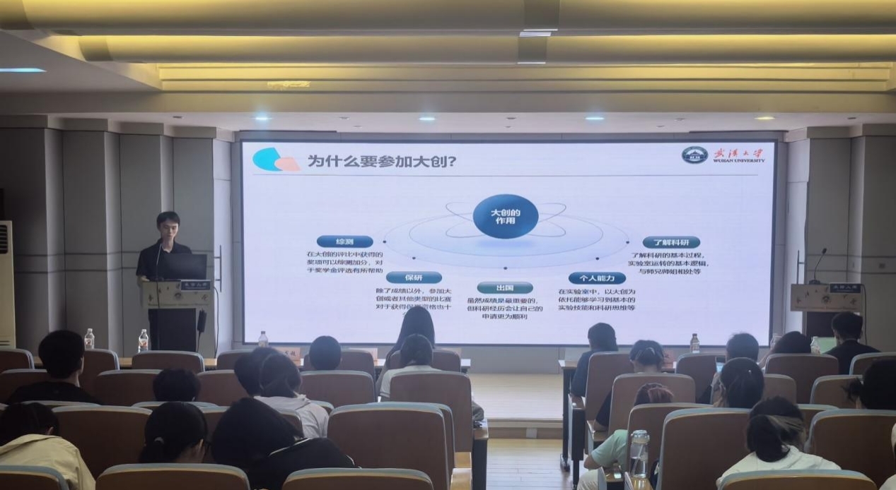 为激发医学生科研热情,培育具有创新思维和实践能力的复合型医学人才,泰康医学院(基础医学院)科创启航系列活动——大创宣讲会于2025年5月18日在医学部行政楼报告厅顺利举行。学院邀请实验教学中心杨哲琼老师和赖茹洁老师,武汉大学大学生创业促进中心成员胡成超、武汉大学大学生创新实践中心成员王秋雯、第十四届“挑战杯”中国大学生创业计划赛金奖——“骨骼创可贴”团队负责人雷清剑、大创优秀项目负责人龙昱敏、医创赛优秀项目负责人路卫昊为同学们解读大创政策、分享相关经验。