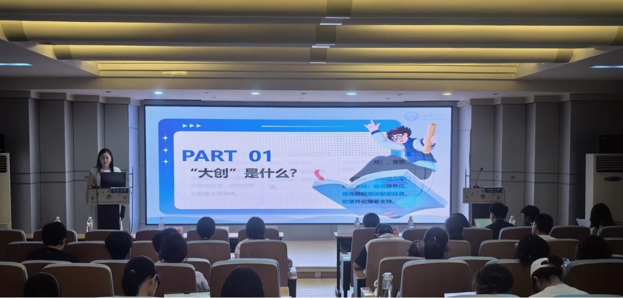 学院实验教学中心赖茹洁老师为同学们系统解读了大学生创新创业训练计划的相关政策,由立项标准到项目实施、由评选规则到赛事准备,她特别强调了项目选题的新颖性和实用性,并详细介绍了各个阶段的任务和要求,以及项目中期检查和结题验收的标准,为同学们规划了一条清晰的项目推进路径。大创优秀项目负责人龙昱敏与同学们分享了自身经历与相关经验,生动讲述了项目从构思到完成的点点滴滴,在场的同学们受益匪浅。